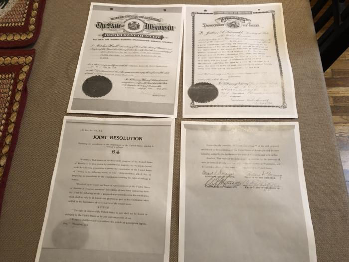 Look around the room for artifacts and articles related to the 19th amendment that will be needed to solve all 4 puzzles (the ones that belong to our group will have an original stamp on them).